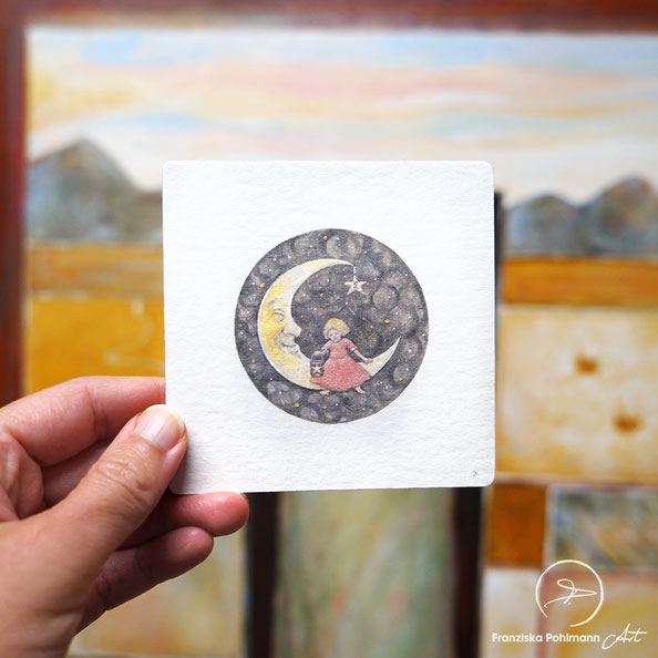 Prozess von Skizze bis zur fertigen Mini-Malerei (Aquarell)
